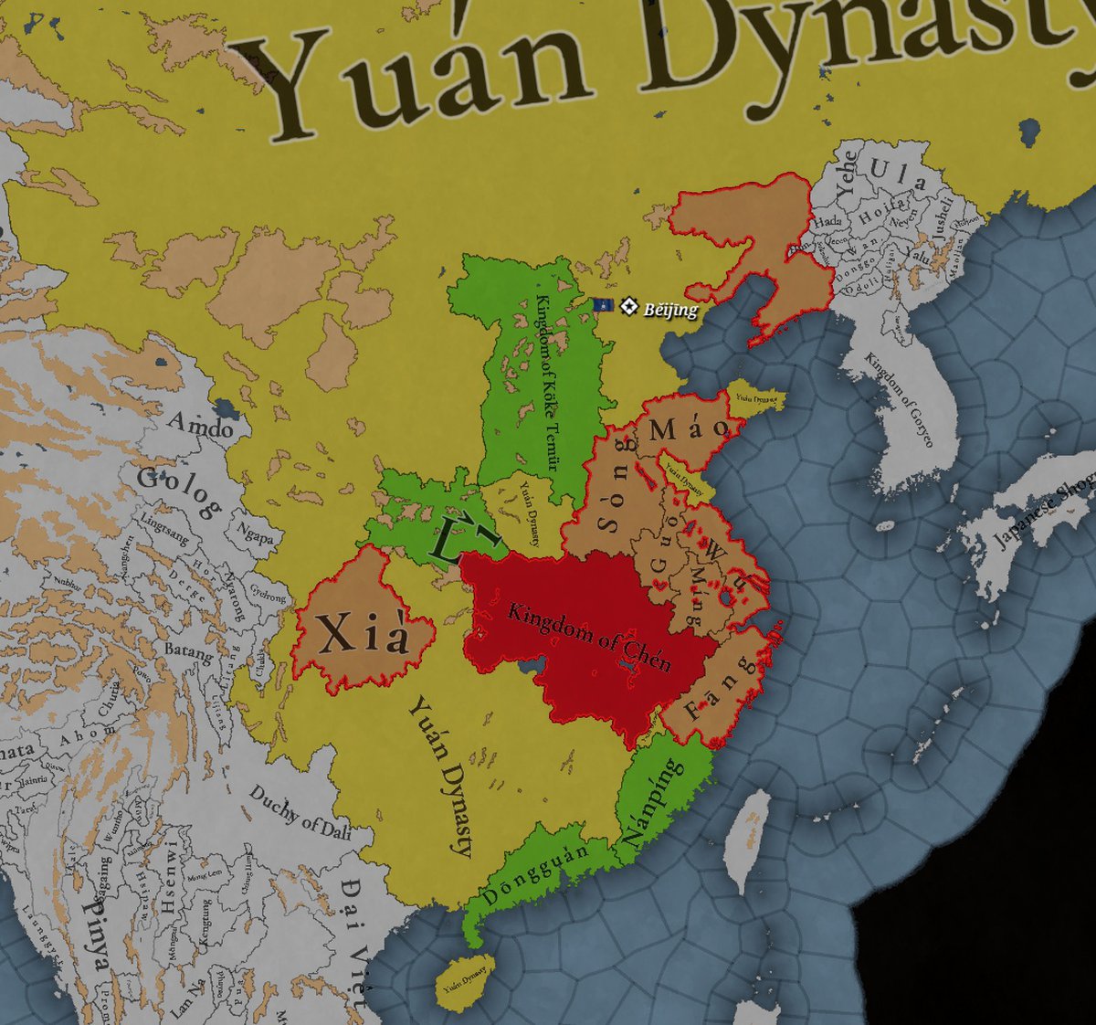 Помимо повстанцев, вотчины будут занимать монгольские генералы. Они тоже будут становиться маленькими странами, но лояльными по отношению к Юань.