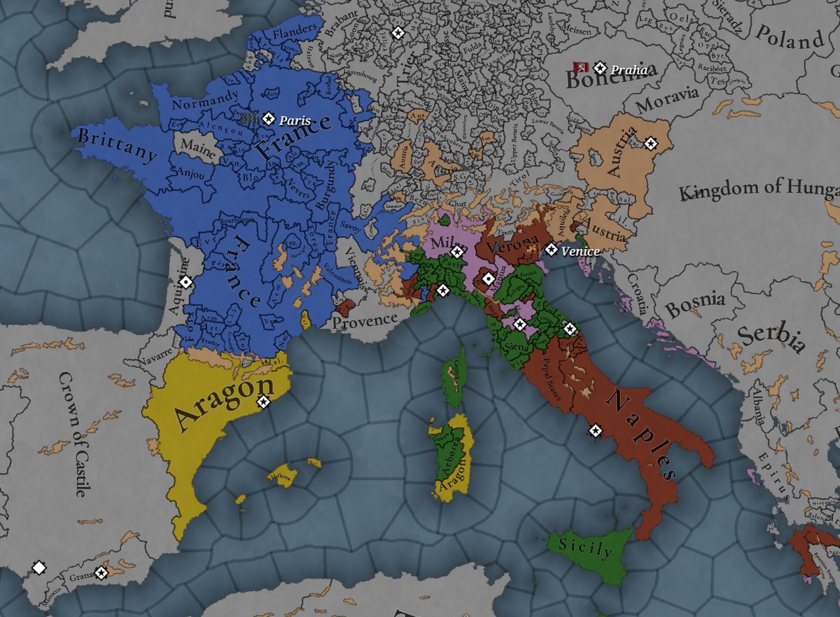 Прочие тоже могут влезть, если у них есть появится земля в Италии. Для победы надо захватить 60% региона или добиться какого-то соглашения. Существует поверье - когда на экзаменах по истории хотят завалить, задают вопрос по Итальянским войнам, настолько там всё было сложно.
