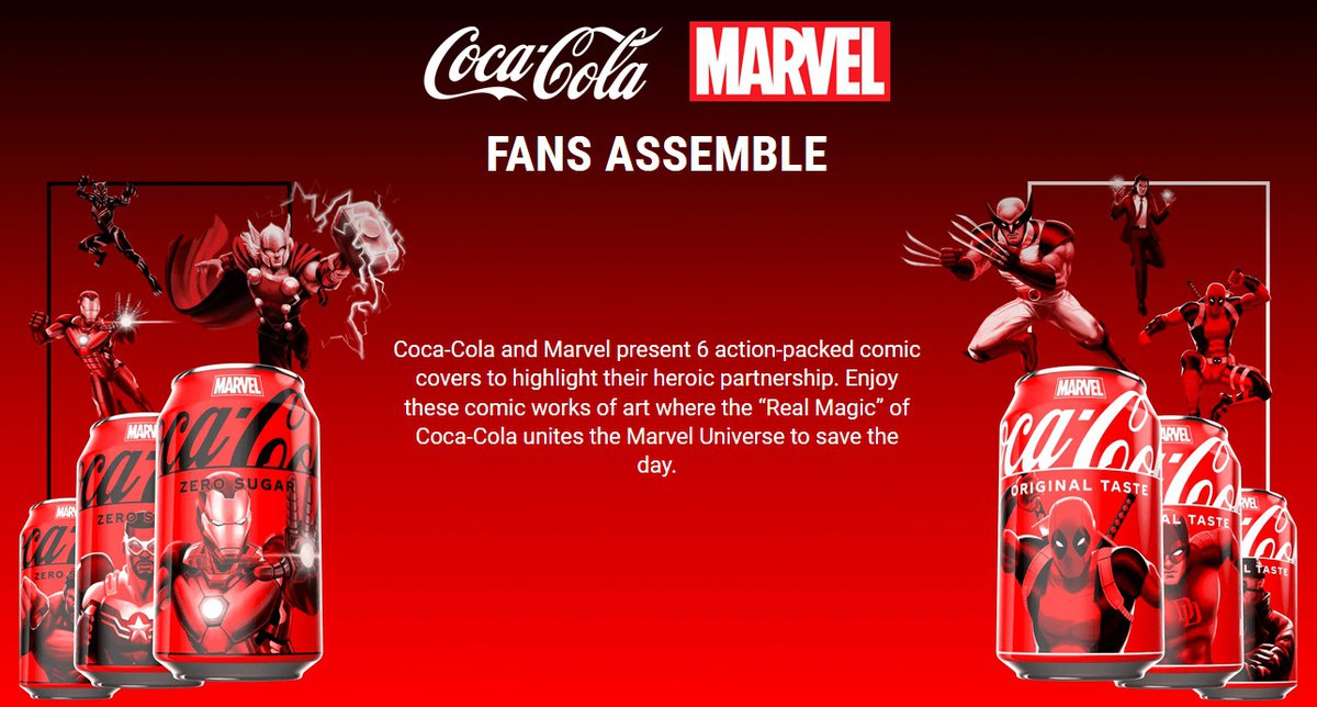 В этом году Marvel и Coca-Cola проводят совместную рекламную кампанию. Coca-Cola выпускает банки с напитками, на которых изображены персонажи комиксов, а Marvel делает вариантные обложки с изображениями Кока-Колы.