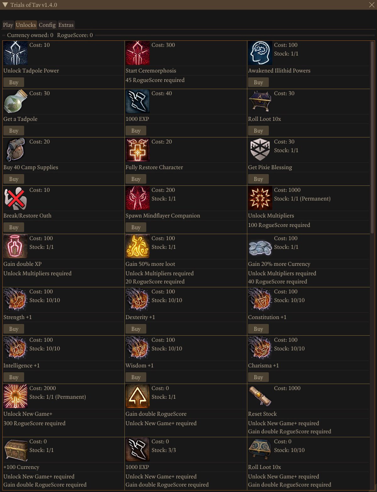 Усиления могут, например, дать доступ к силам иллитидов, снабдить дополнительным опытом или повысить характеристики персонажа. Набрав достаточно рейтинга, игрок получит возможность запустить режим Новая игра Плюс.