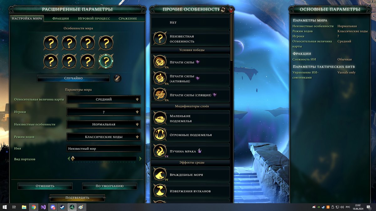 Для любителей случайного разнообразия добавили возможность проставлять рандомные особенности для карт при генерации.