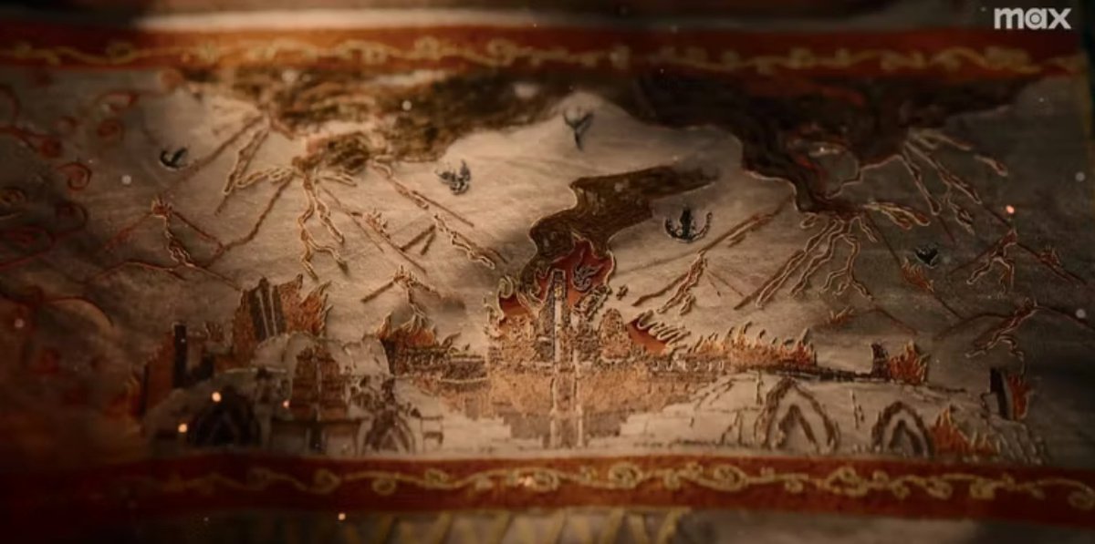 Завоевание Вестероса закончилось, и на экране мы видим герб дома Таргариенов и начало постройки Королевской Гавани.