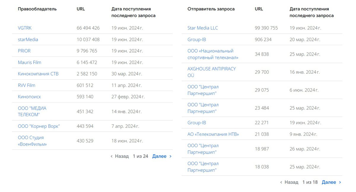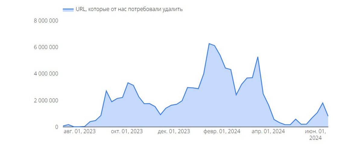 Большую часть запросов на удаление контента из поиска шлет ВГТРК.