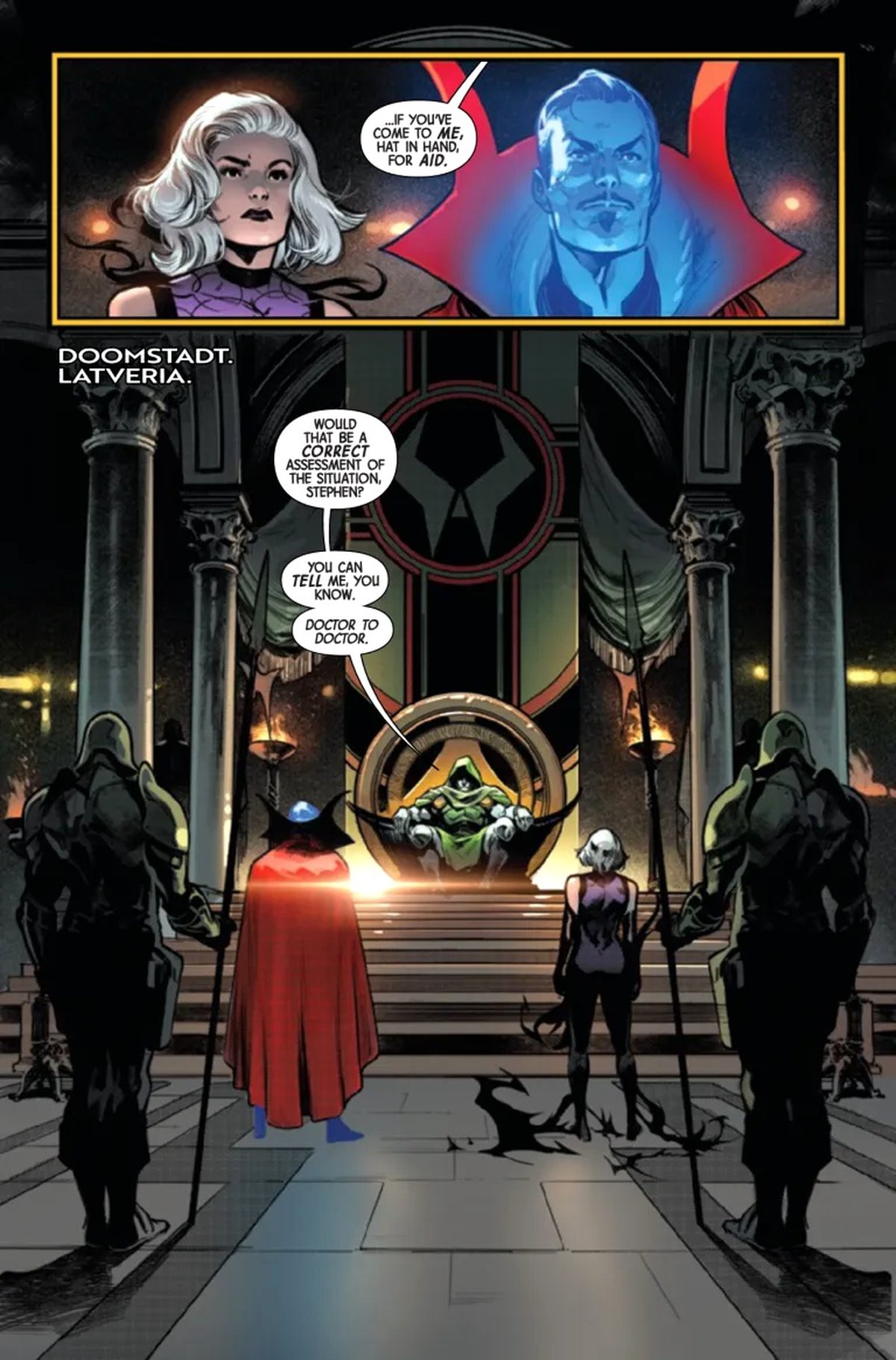 Доктор Стрэндж в астральной форме и его жена Клеа пошли к Доктору Думу за помощью. Он довольно-таки осведомлён о ситуации. Тигра с Охотничьей Луной и кем-то ещё отправились в Асгард, но на превью не показывают их.