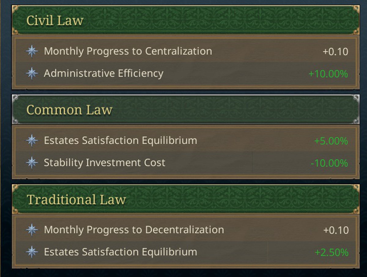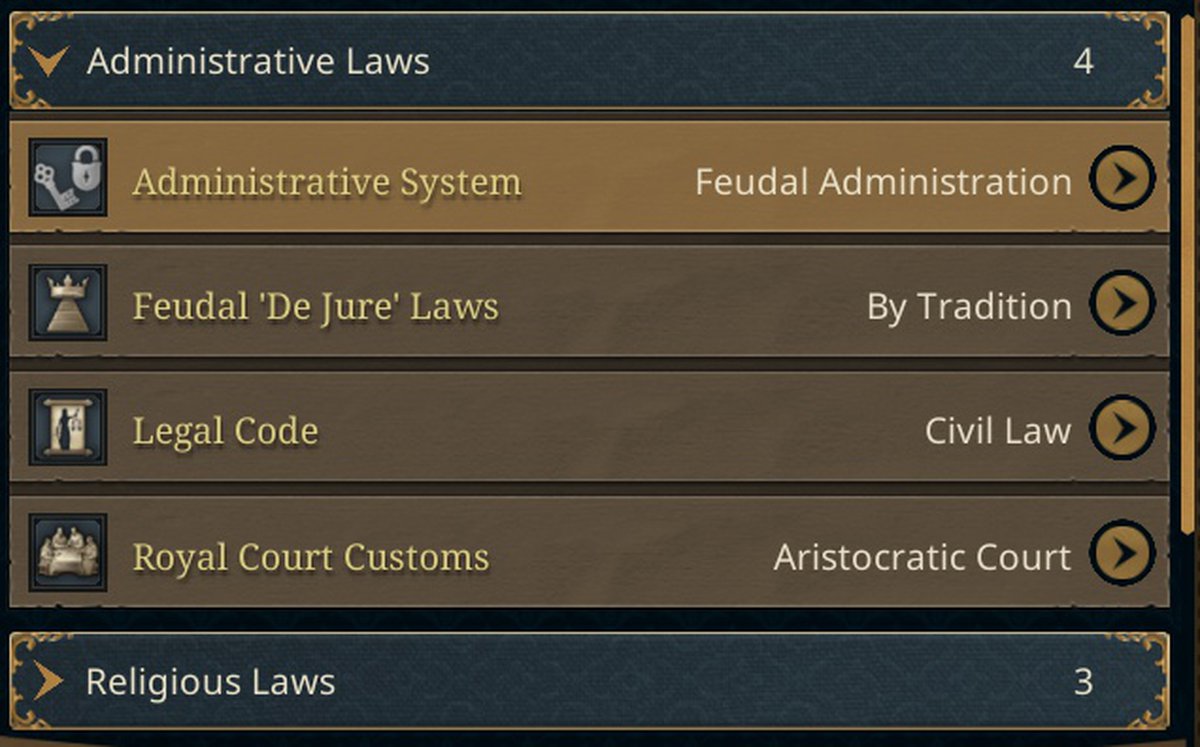 Разработчики хотят, чтобы законы не просто давали модификаторы, а влияли на доступность механик, сословия и социальные ценности.