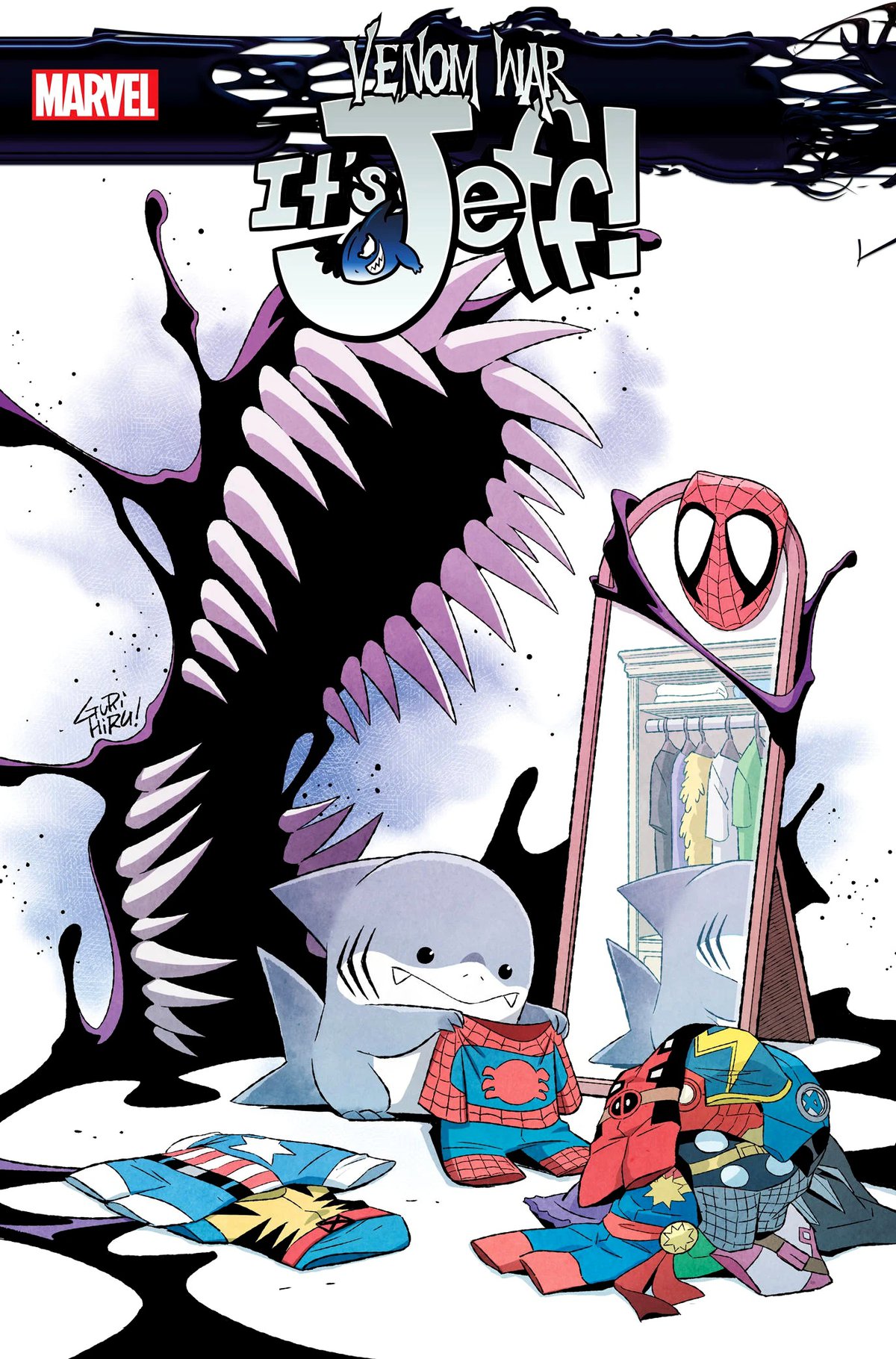 Venom War: It's Jeff #1 выходит в ноябре. Пишет Келли Томпсон, рисует Gurihiru, он же сделал обложку. Они много работали над сухопутным акулёнком.