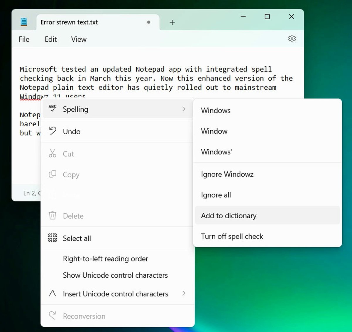 Это первый раз, когда одна из версий «Блокнота» получает встроенную проверку орфографии. На то, чтобы добавить в редактор такую функцию, Microsoft потребовался 41 год: первый «Блокнот» вышел в 1983 году.