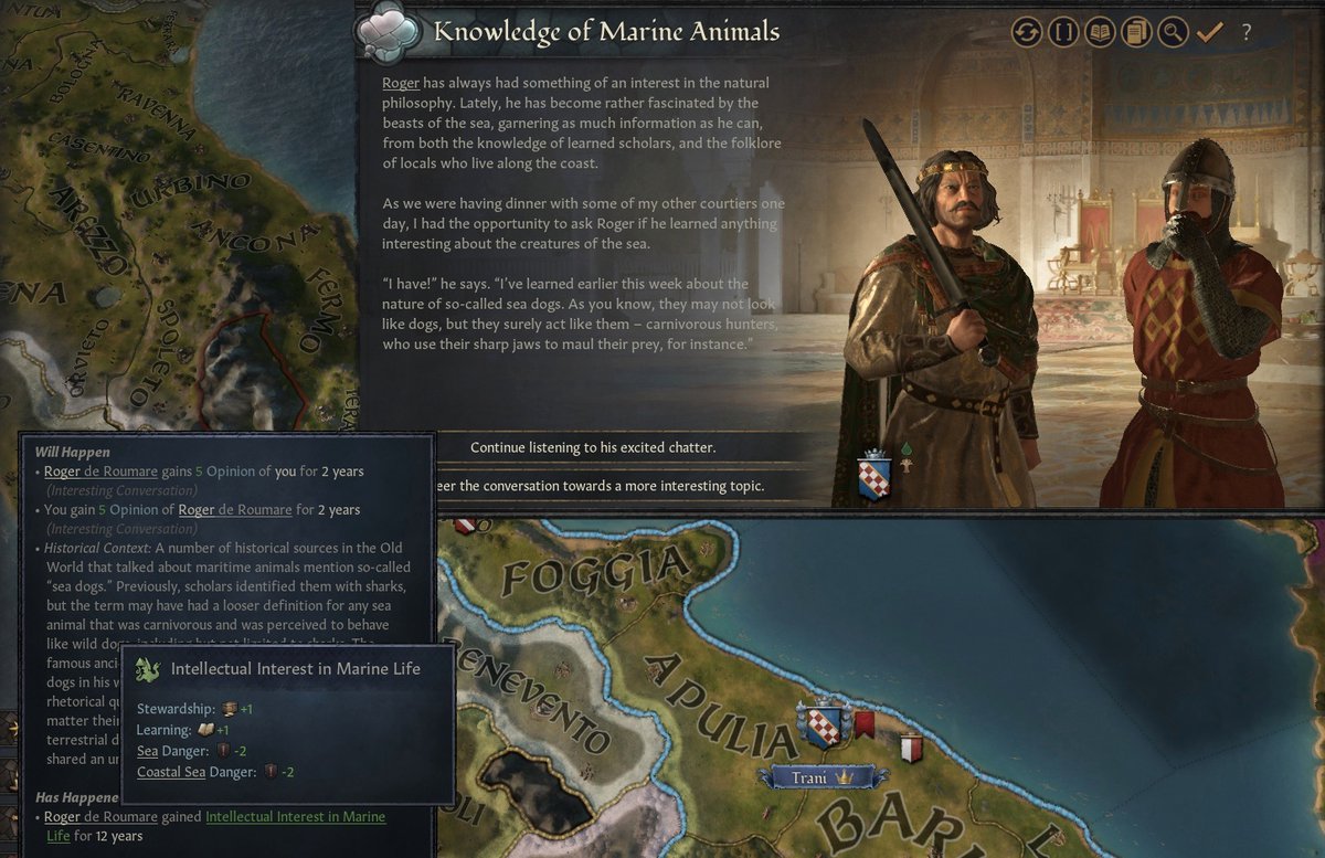 Кто-то из придворных внезапно увлекается книжками и устным народным творчеством про водную жизнь. Ему, конечно же, не терпится начать это всё рассказывать своему правителю.