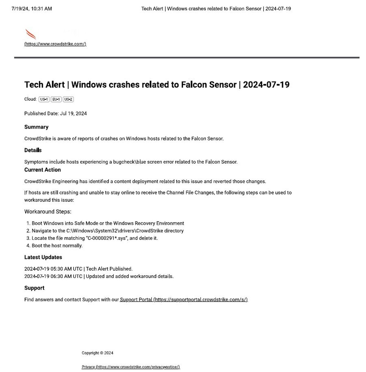 Утром 19 июля компании, использующие PC и сервера на базе Windows, начали сообщать о критических сбоях: операционные системы стали показывать «синий экран смерти». Проблема затронула самые разные организации и страны.