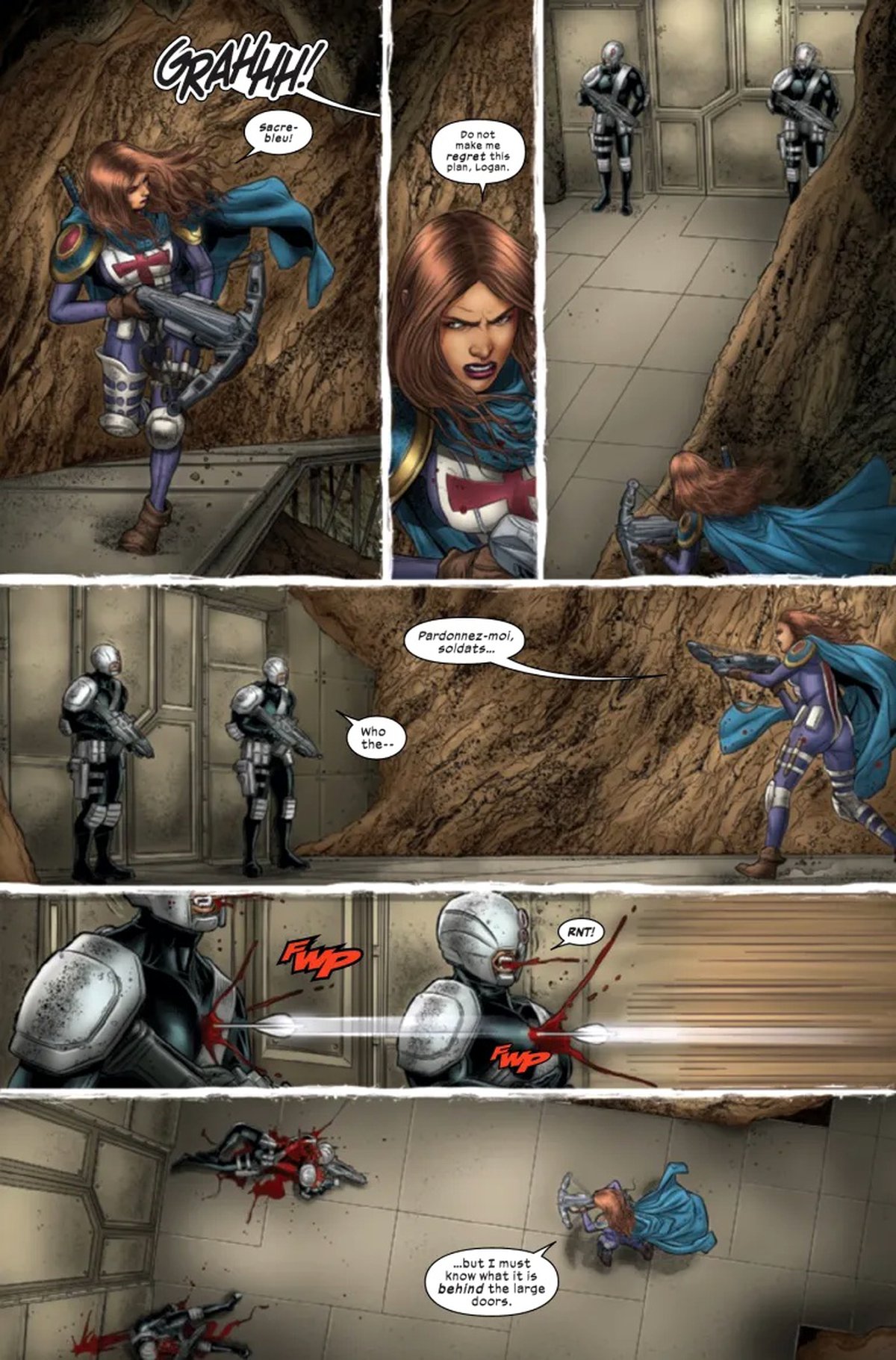 На превью Алисия и Маверик подходят к Логану. У них всё получилось - Росомаха почти стал их оружием. Однако злодейка ищет себе будущего короля и всякие лакеи ей не нужны. Она приказывает Хоулетту драться с Мавериком насмерть.