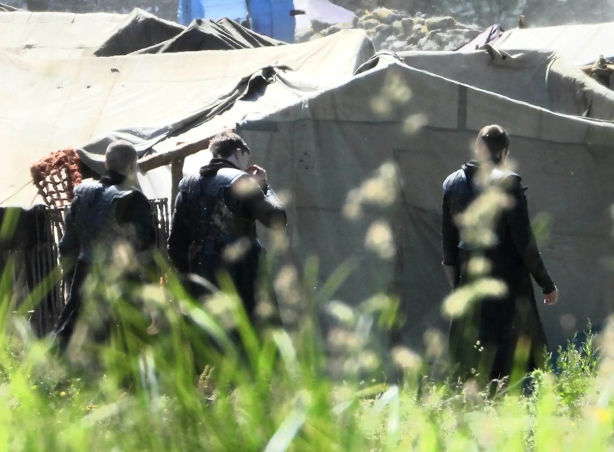 Также в кадр попали многочисленные статисты, играющие беженцев. Предполагается, что Фишберна сфотографировали во время съемок сцены в лагере, когда Геральт и его спутники пытались спасти девушку, обвиненную в колдовстве.