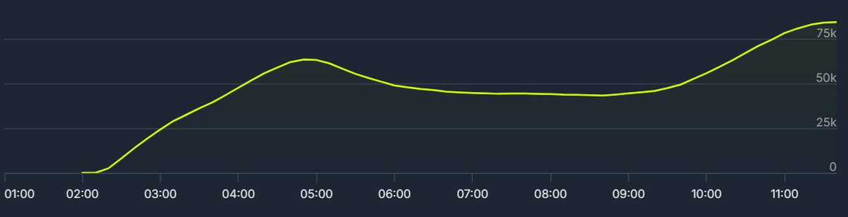 Уже через несколько часов после релиза онлайн в бенчмарке превысил 84 тысячи человек. С точки зрения Steam бенчмарк Black Myth Wukong это отдельный проект, поэтому следить за числом его пользователей можно стандартными средствами.
