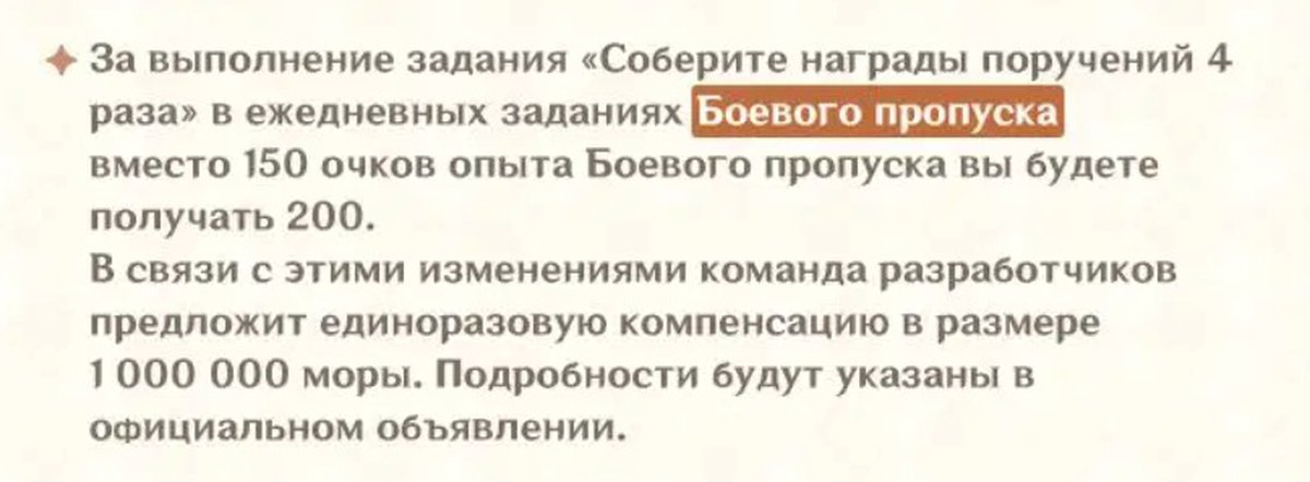 В Genshin Impact выдадут 1 миллион моры компенсации за новый Боевой пропуск