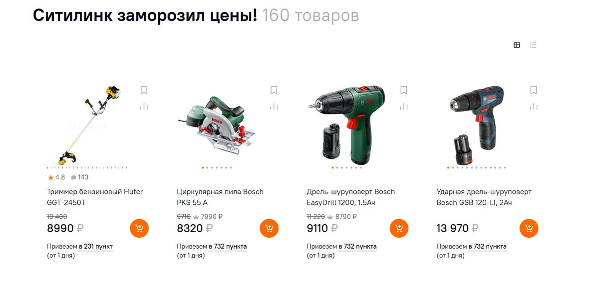 В «Ситилинке» решили заморозить цены на 160 товаров из 60 категорий. Среди них есть шуруповерты, микроволновки, калькуляторы, стиральные машины, чайники, мониторы, компьютерные столы и бумага.