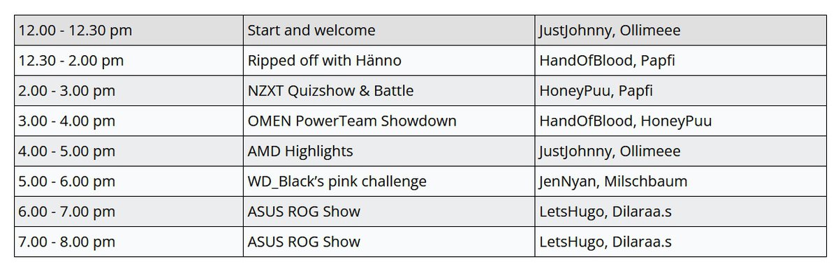 В шоу поучаствуют партнеры AMD: заявлены ASUS, Western Digital и другие компании. Каждому партнеру посвятили по часу (исключение — ASUS), сама AMD забронировала часовую презентацию Highlights.