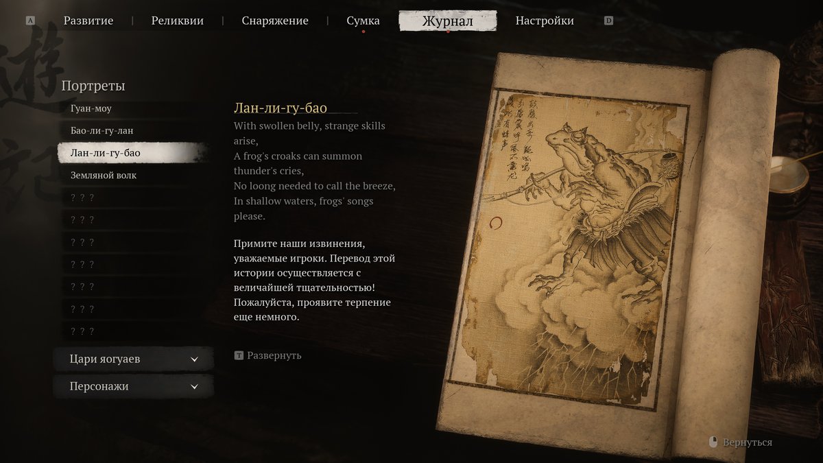 Экшен Black Myth Wukong по мотивам китайского эпоса «Путешествие на Запад» получил не совсем полный перевод на русский язык. Во время прохождения мы обнаружили, что в актуальной версии игры все еще не переведены некоторые тексты.
