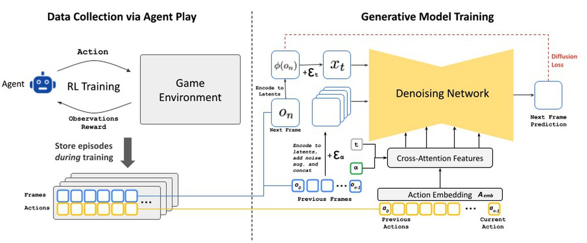 Исследователи обучали GameNGen в два подхода. Сперва записывались геймплейные ролики реального Doom: в игру играла отдельная нейросеть, параллельно обучавшаяся «правилам» Doom. На основе ее данных обучалась генеративная модель.