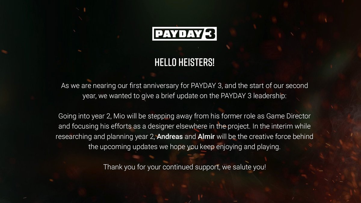 Кооперативный шутер Payday 3 сменил руководителя разработки. Миодраг Ковачевич, руководивший разработкой игры, покинул пост; его место займут сразу два преемника, Альмир и Андреас.