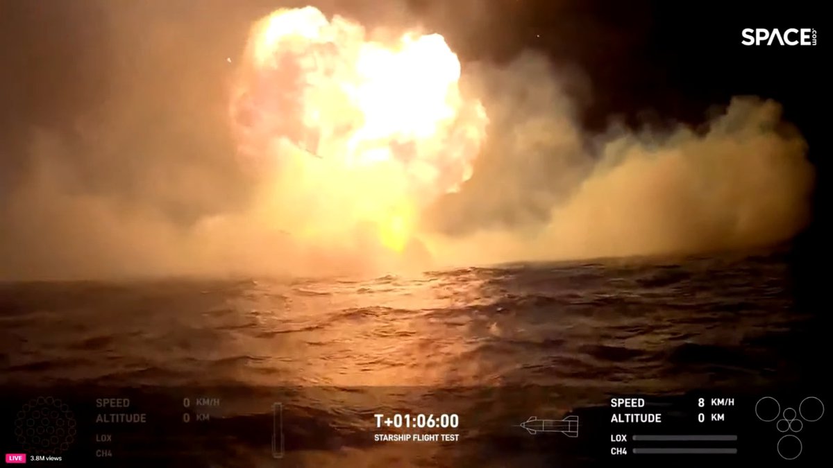 Вторая ступень Starship снова садилась в океане, на этот раз при посадке ступень зрелищно взорвалась.