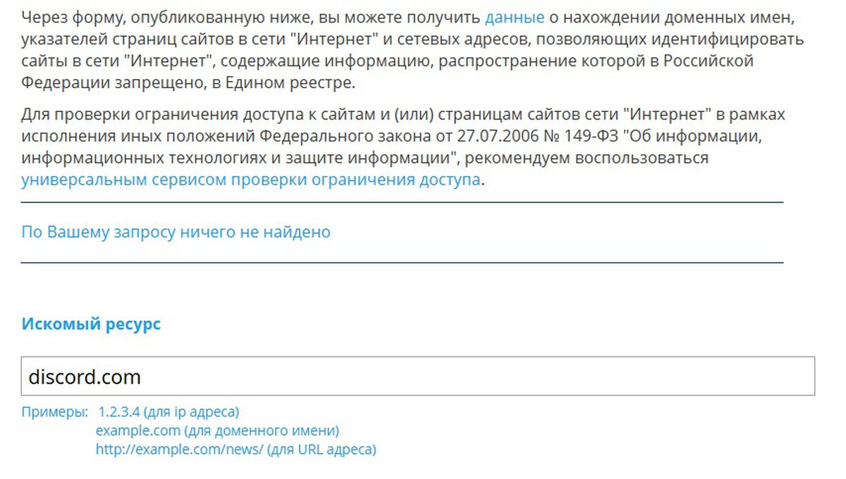 Во второй половине дня 15 октября домен сервиса Discord пропал из основных реестров Роскомнадзора. Сервиса нет ни в реестре адресов с запрещенной информацией, ни в реестре заблокированных интернет-ресурсов.