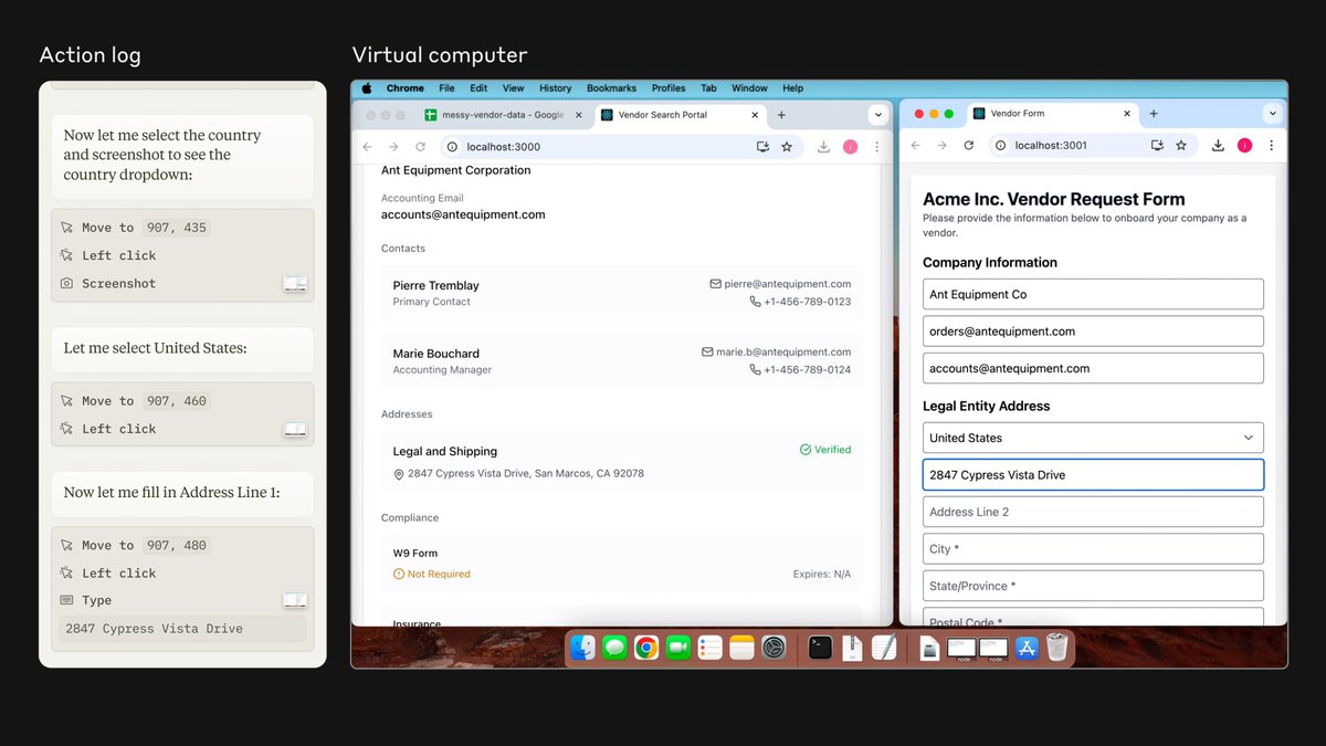 Нейросеть может работать с ПК, перемещая курсор, имитируя нажатие клавиш и так далее. Модель была дополнительно обучена так, чтобы «видеть» происходящее на экране ПК и взаимодействовать с этой информацией.