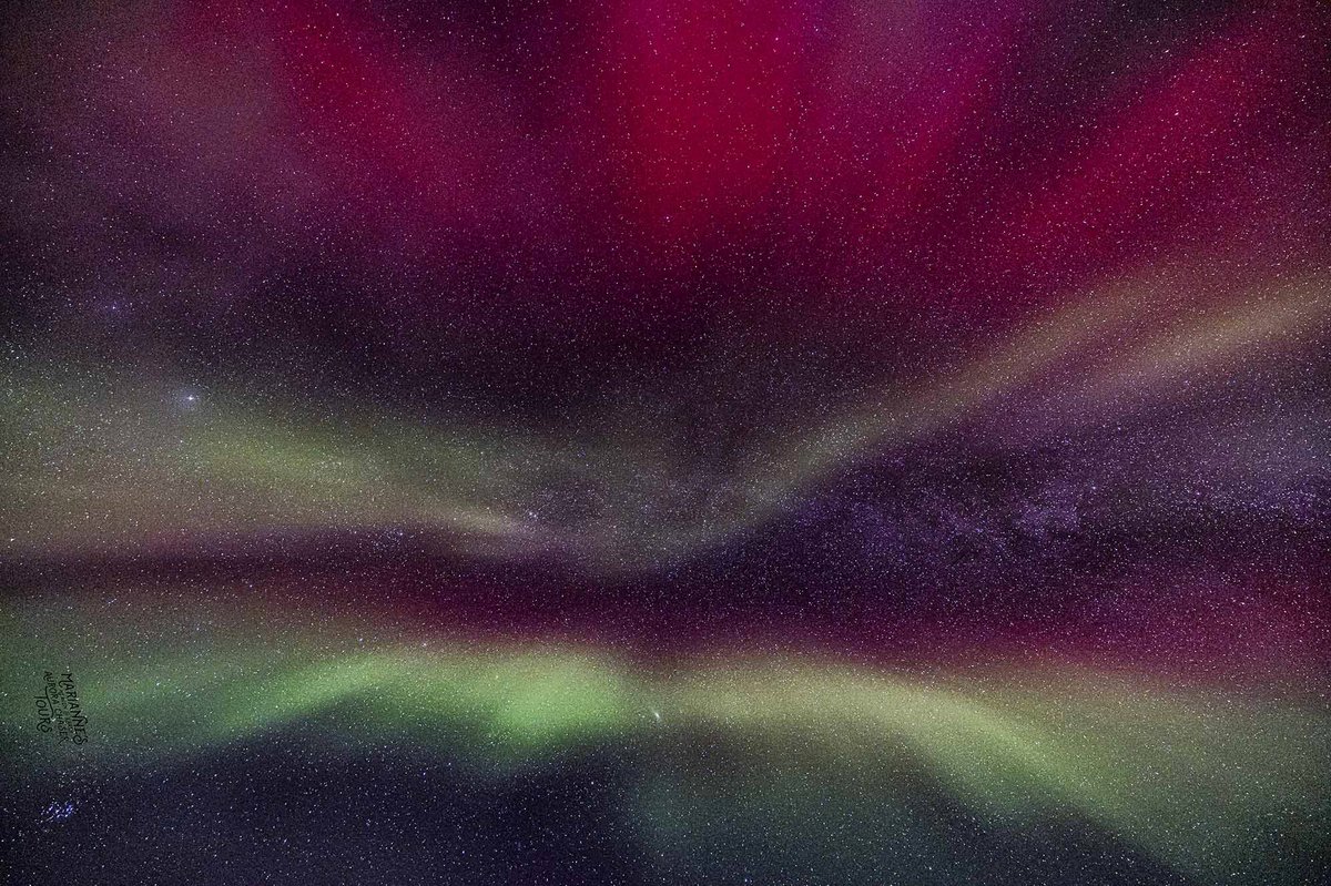 По словам Гриффина, наблюдать южное сияние можно было на протяжении большей части ночи. В основном сияние было желтых и красных оттенков; цвет полярного сияния зависит от соединений, с которыми сталкиваются частицы солнечного ветра: например, зеленое северное сияние возникает, когда частицы сталкиваются с кислородом.