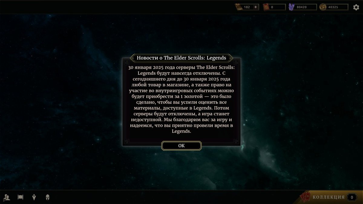 Игровое подразделение Microsoft приняло решение закрыть карточную игру The Elder Scrolls Legends. Сервера проекта перестанут работать 30 января 2025 года, соответствующее уведомление появилось в самой игре.