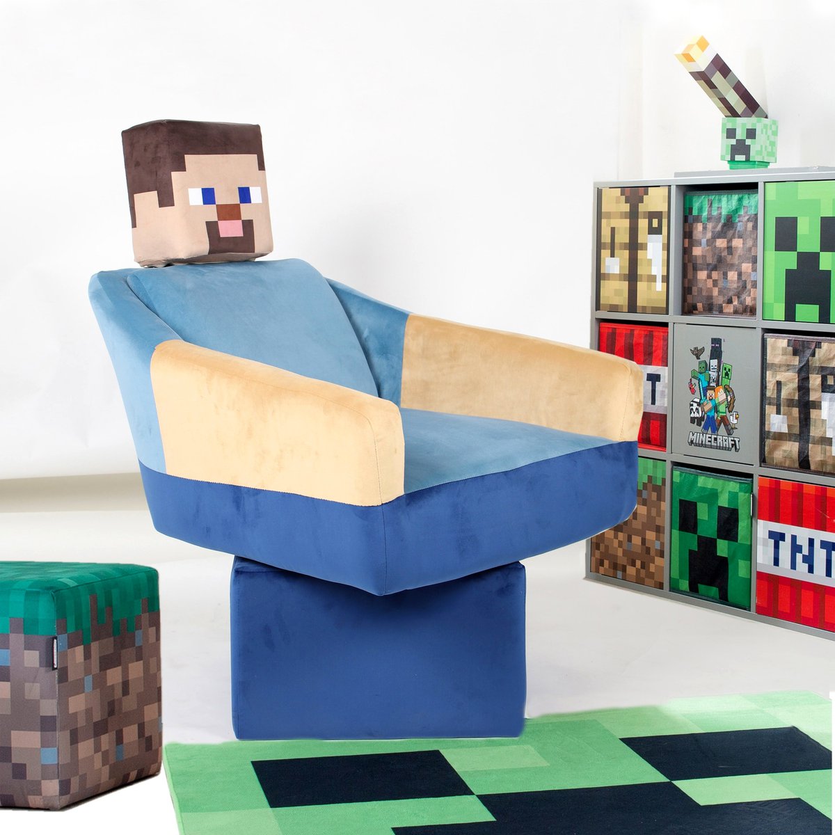 Студия Mojang показала кресло, выполненное в виде Стива — главного героя Minecraft. Голова Стива стала подголовником кресла, руки превратились в подлокотники и так далее.