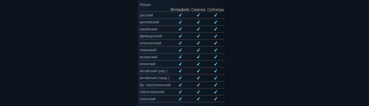 Судя по количеству заявленных языков, в игре будет не очень много реплик.