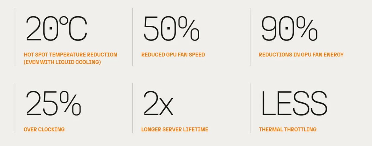 По оценке компании, ее технология GPU-On-Diamond позволяет снизить температуру горячей точки чипа на 10-20 градусов Цельсия. Вместе со снижением температуры компания обещает уменьшение энергопотребления чипов.