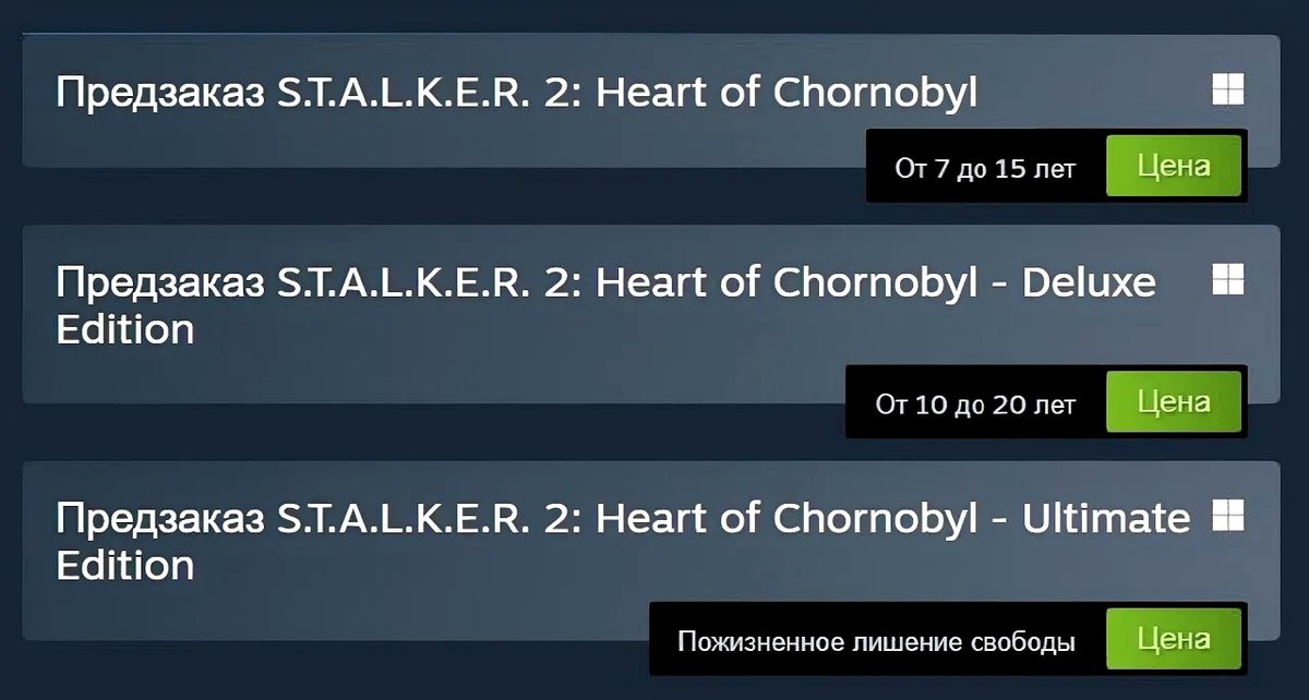 После выхода интервью Горелкина стала популярной картинка в духе «от 7 до 15 лет за предзаказ S.T.A.L.K.E.R. 2». Она не так уж далека от истины: по словам собеседников РБК, в случае запрета S.T.A.L.K.E.R. 2 в РФ покупателям действительно может грозить наказание вплоть до уголовного.