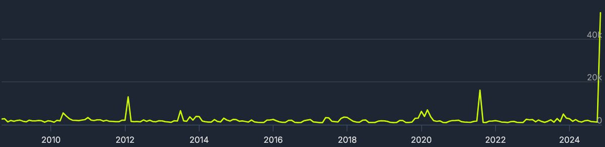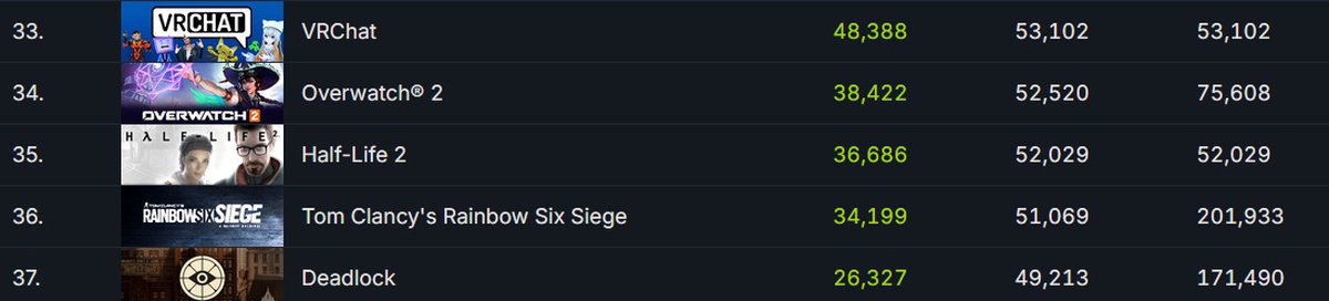 Предыдущие пики онлайна были гораздо скромнее. Рекорд, видимо, был установлен в 2021 году: тогда в Half-Life 2 одновременно играло чуть больше 16 тысяч человек.