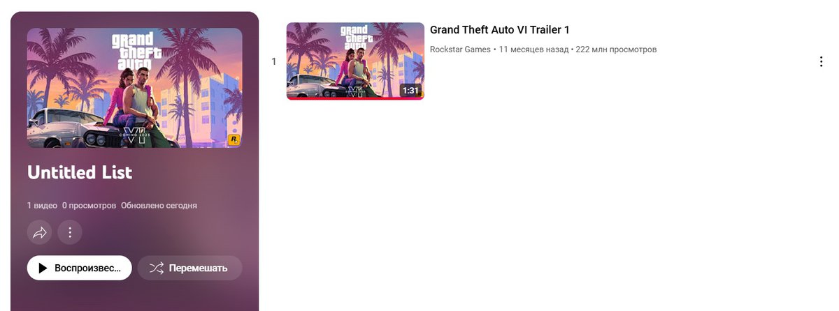 Пока в плейлисте есть только один трейлер: это дебютный ролик Grand Theft Auto VI, показанный в 2023 году. Разумеется, теперь фанаты надеются, что вскоре разработчики покажут еще один трейлер — возможно, он даже уже загружен на YouTube, но пока скрыт.