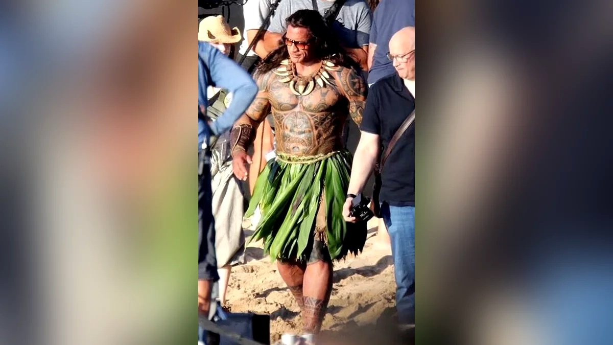 Изначально информация о том, что для роли полубога Мауи Джонсон надевает специальный костюм, была засекречена. Но, как это обычно бывает, любопытным журналистам удалось сделать несколько фотографий со съёмочной площадки.