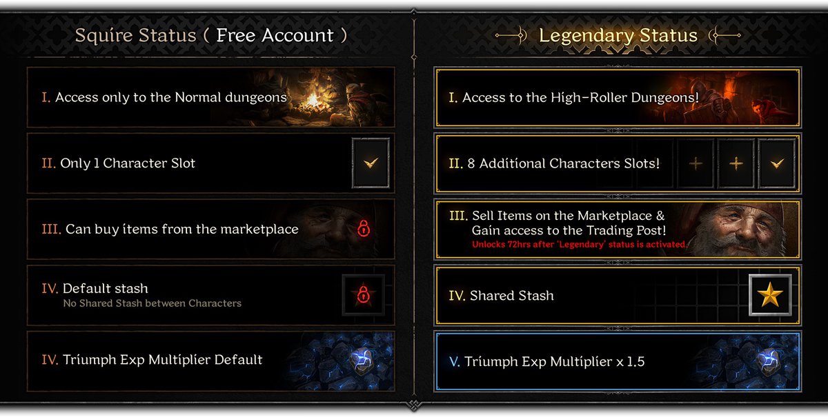Владельцы Легендарной учётной записи получают: доступ к Хайроллер подземельям, дополнительные функции торговли, +8 слотов персонажа, 1 общий тайник и многое другое!