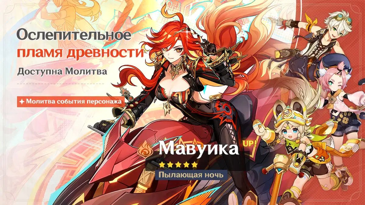 - Мавуика: новый герой, 5 звезд редкости, пиро, двуручное.