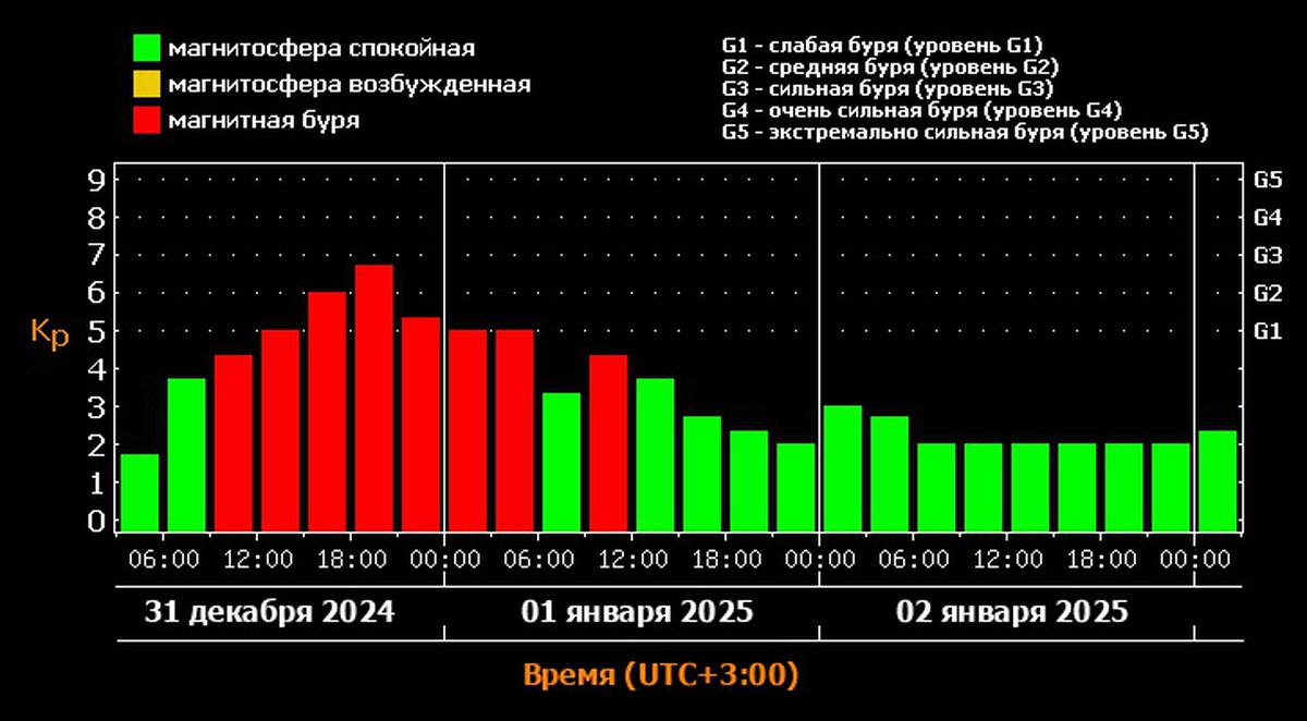 Энергия первых вспышек уже здесь: 31 декабря ожидаются достаточно мощные геомагнитные бури. Согласно уточненному прогнозу, магнитная буря может продлиться вплоть до середины дня 1 января.