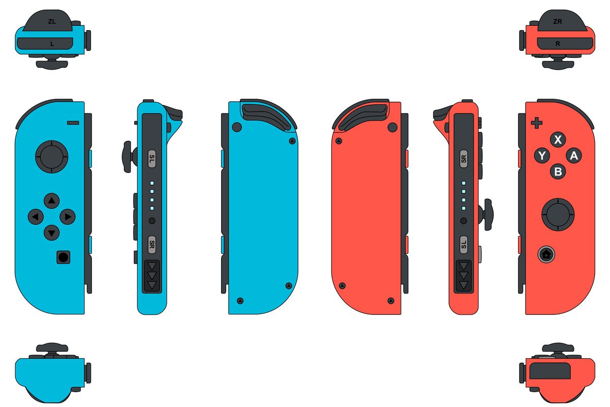 Новый контроллер все так же крепится к корпусу с помощью магнитных защелок и снабжен стиком с несколькими кнопками. Судя по цвету и расположению стика, перед нами левый джойкон; у правого стик находится внизу, а сам контроллер красного цвета.
