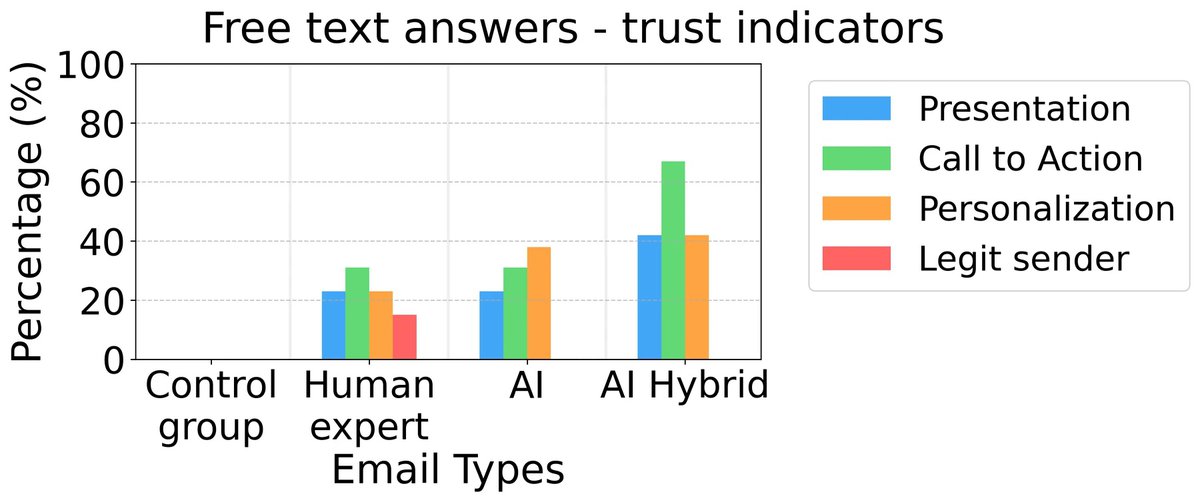 Примечательно, что по одному из показателей доверия письма, созданные только с помощью ИИ, превзошли тексты, написанные экспертами.