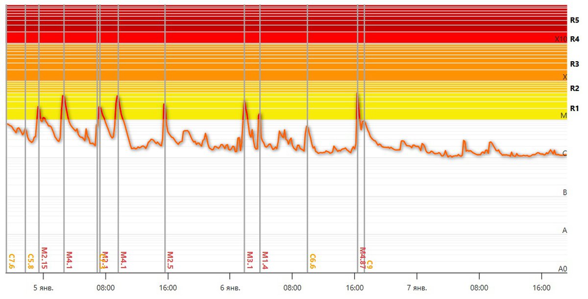 Последняя сколько-нибудь заметная вспышка произошла вечером 6 января. С тех пор график активности звезды сильно спрямился и остается таким чуть больше 24 часов.