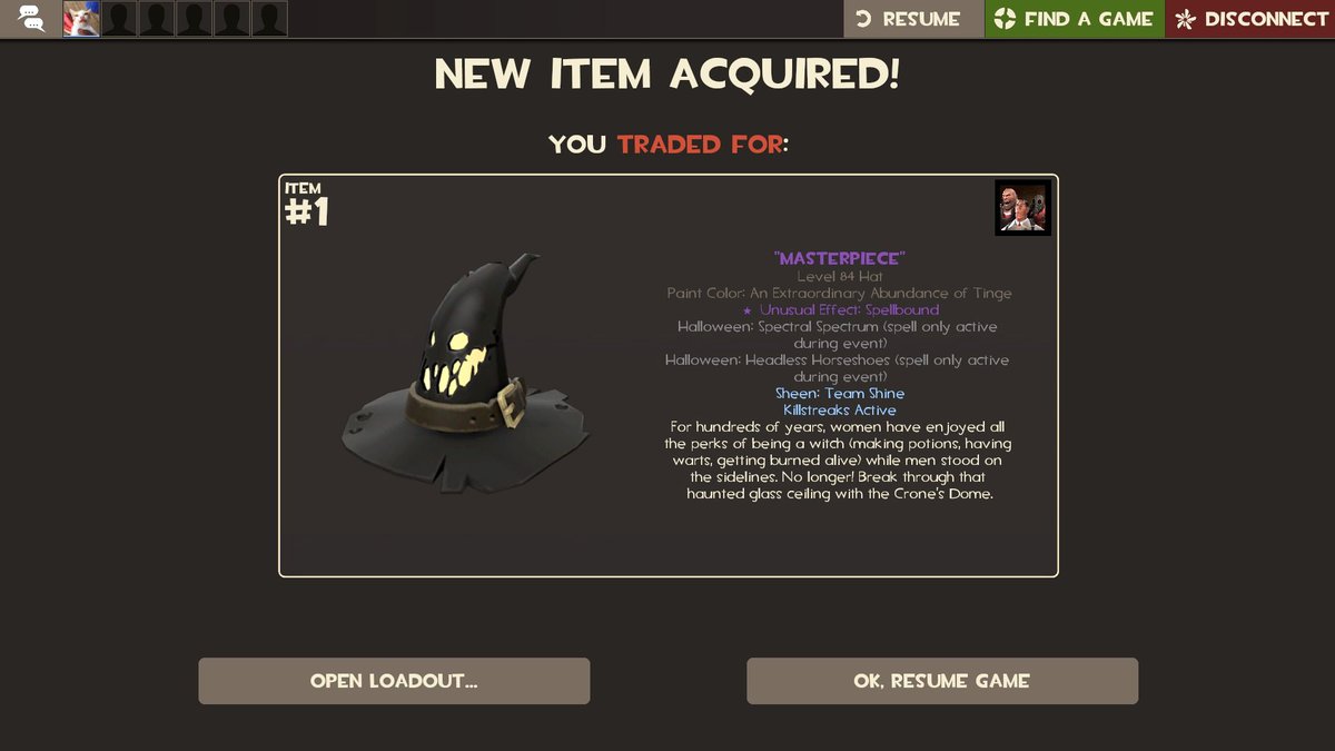 Рекордная стоимость нынешней шляпы объясняется крайне удачной комбинацией предмета и наложенного на нее эффекта. Кроме того, шляпа обладает уникальными эффектами-заклинаниями, вырезанными из Team Fortress 2 еще в 2015 году.