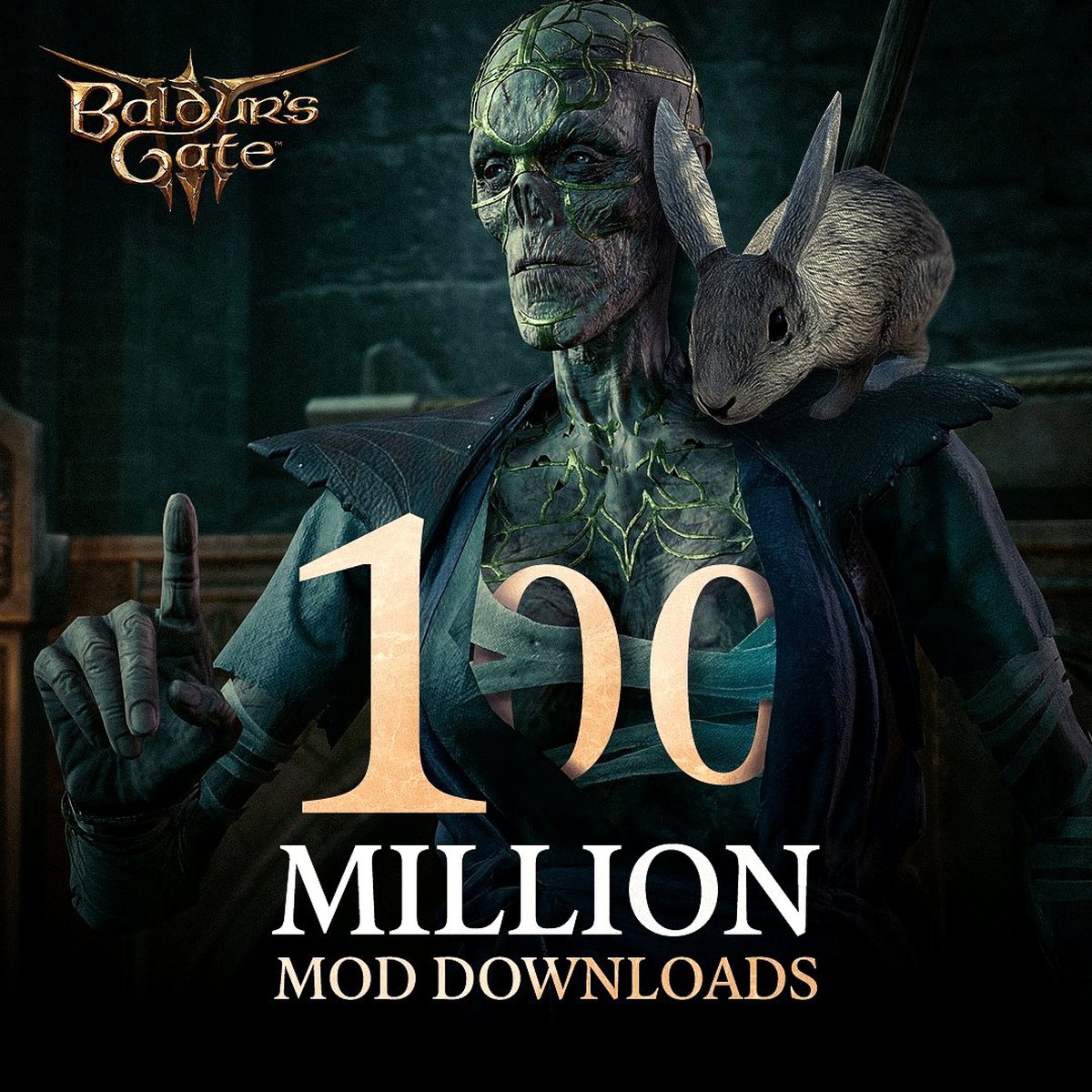 Чтобы отметить достижение моддеров, разработчики нарисовали постер с зайчиком и Иссохшим, одним из спутников главного героя Baldur's Gate 3. Если присмотреться, то окажется, что у Иссохшего есть грудь; на это указывает и размещение нулей на картинке.