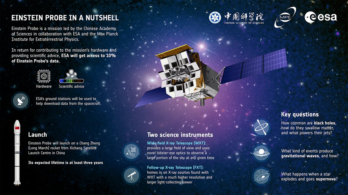 Телескоп «Эйнштейн» — это совместный проект Китайской академии наук, Института внеземной физики Макса Планка, Национального центра космических исследований и Европейского космического агентства. Аппарат запустили в 2024 году, ожидается, что он проработает в космосе до конца 2020-х годов.