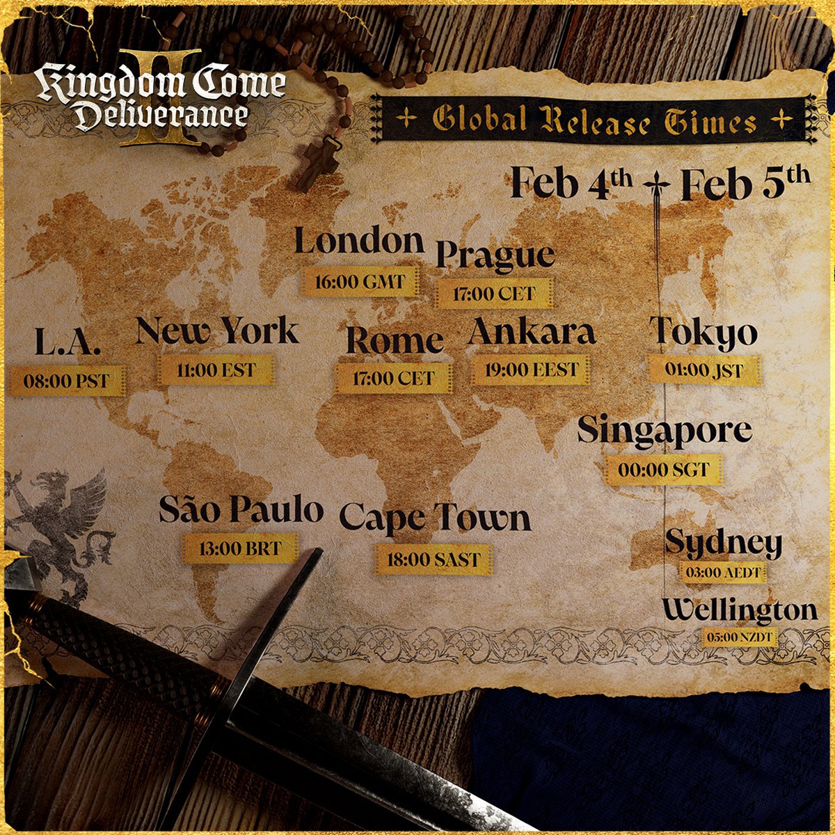 Студия Warhorse раскрыла время выхода ролевого экшена Kingdom Come Deliverance 2. Игра будет выпущена не в полночь 4 февраля по местному времени, а в одно и то же время во всем мире; в Москве это будет уже вечер 4 февраля.