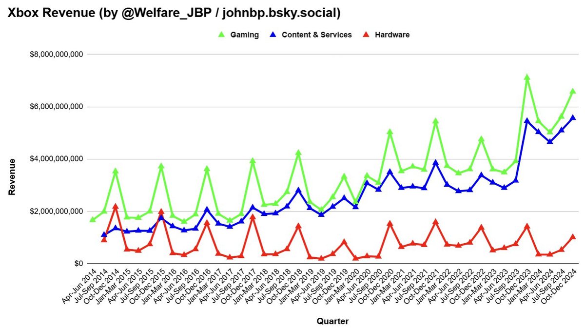 Предполагается, что выручка игрового подразделения Microsoft за квартал была на уровне $6.5 миллиарда; из них $5.5 миллиарда принесли игры и сервисы, еще $1 миллиард сгенерировали продажи Xbox. О числе проданных консолей нет информации.