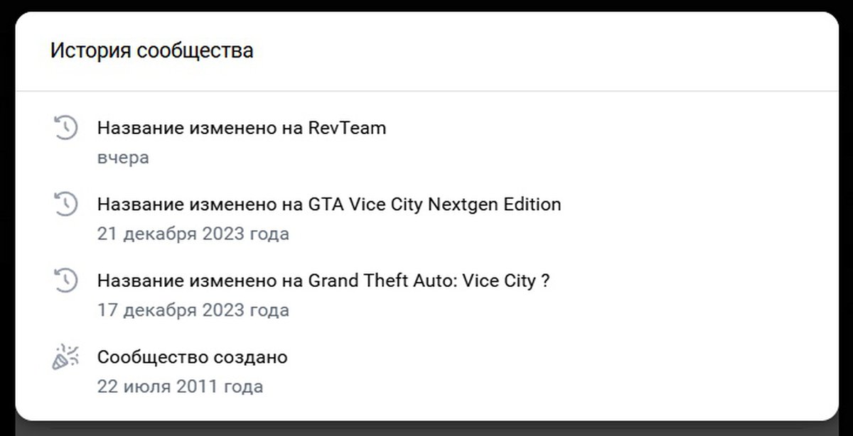 Со страницы пропали скриншоты ремастера, отчет о релизе проекта с ссылками на загрузку и трейлеры Grand Theft Auto Vice City Nextgen Edition. Кроме того, была отключена возможность оставлять комментарии к существующим постам. Кроме того, сообщество было переименовано.