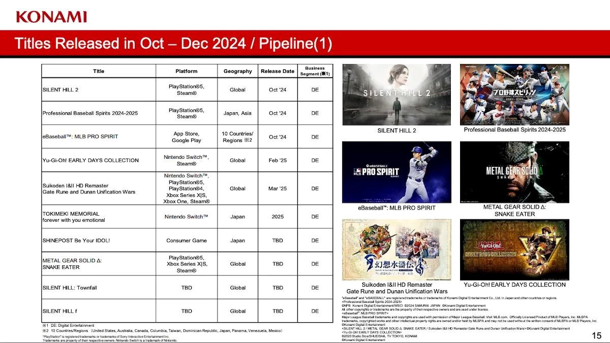 Среди проектов, поспособствовавших такому успеху, Konami называет ремейк Silent Hill 2, вышедший как раз ближе к концу отчетного периода. Недавно компания сообщила о продаже 2 миллионов копий игры.