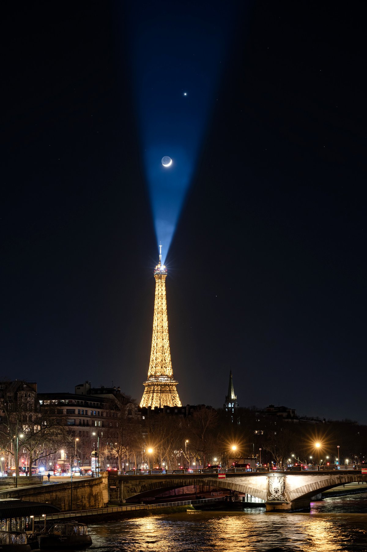 Съемка велась в ночном Париже, Гвенаэль построил кадр таким образом, что Эйфелева башня словно «подсвечивает» соединение Венеры и Луны. Поймать хороший кадр было нелегко из-за городской засветки, но в итоге все получилось.