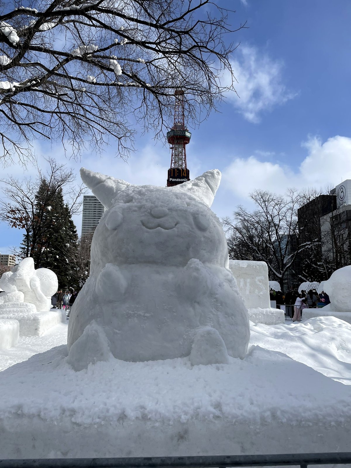 На фестивале выставлены и другие необычные работы из снега. К пример, кто-то слепил здоровенного пикачу; хотя фигура выглядит грубовато, кажется, это все-таки официальная работа, а не творчеством местных жителей.