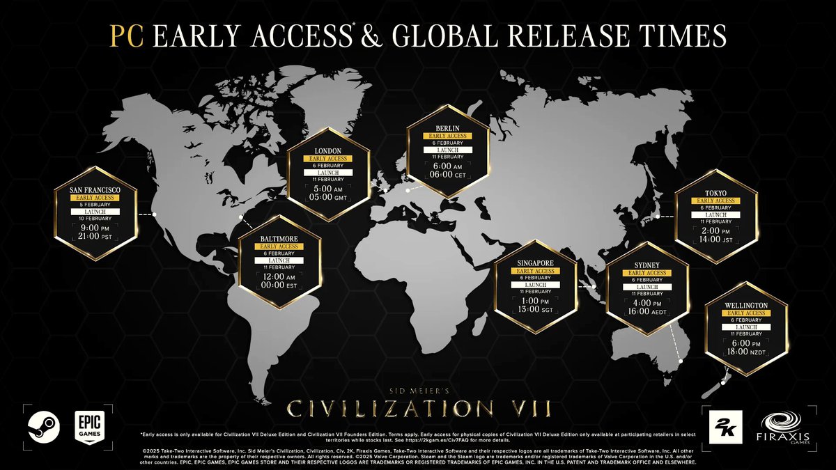 Игроки из западной части России смогут начать прохождение утром 6-11 февраля (в зависимости от купленного издания), игроки из восточных регионов получат доступ к Civilization 7 ближе ко второй половине дня.